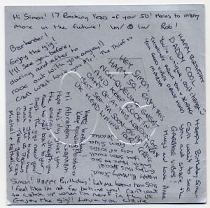 Well, this was always gonna be a special one thanks to some of my great friends with who i go to the Garbage shows. After i was diagnosed with having brain tumors, totally out of the blue, slightly after my birthday, i got this card from my wonderful friends :